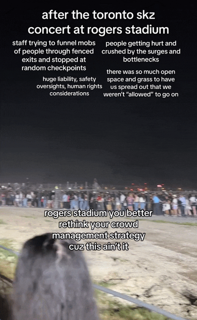“我当时不幸夹在人群中,真的太吓人了,好多人挤成一团!我被困在里面,但我身后有个女孩情况更糟,我们需要大量医护人员,希望她没事……我希望罗杰斯体育场能尽快解决这个问题,尤其在BLACKPINK来之前,否则场面会更惨。”