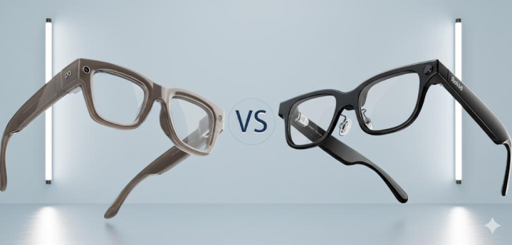 ▲带屏AI眼镜Meta Ray-Ban Display(左)与Rokid乐奇眼镜(右)